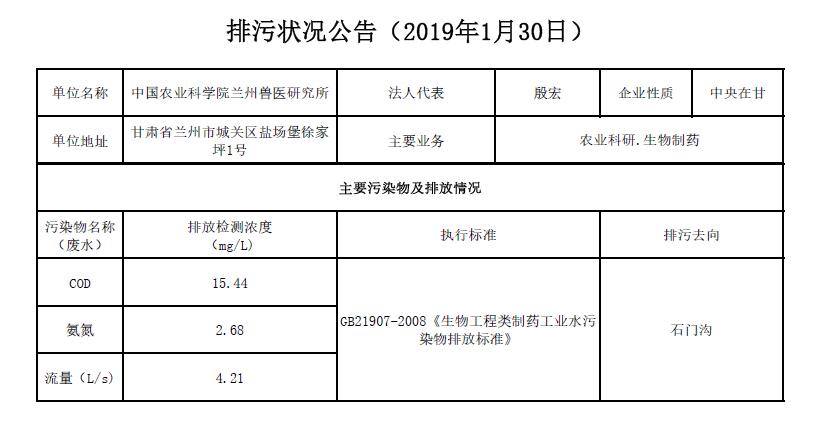 2019年1月30日污水排放检测数据公告