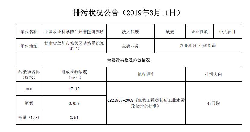 2019年3月11日污水排放检测数据公告