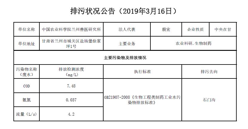 2019年3月16日污水排放检测数据公告