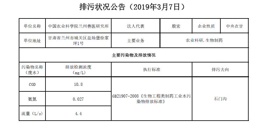 2019年3月7日污水排放检测数据公告