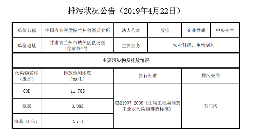 2019年4月22日污水排放检测数据公告