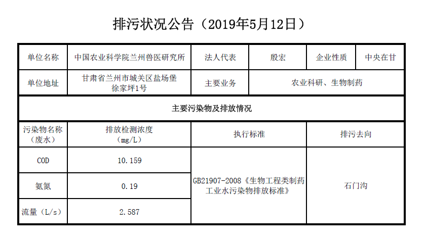 2019年5月12日污水排放检测数据公告