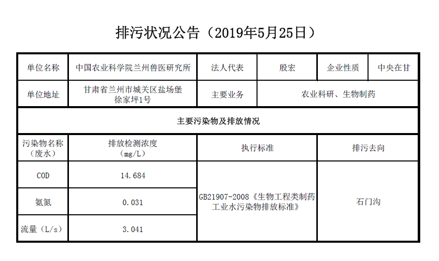 2019年5月26日污水排放检测数据公告