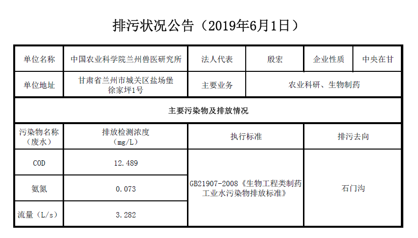 2019年6月1日污水排放检测数据公告