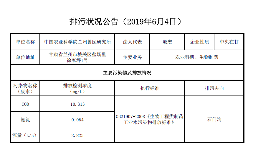 2019年6月4日污水排放检测数据公告