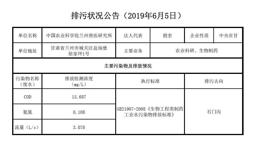 2019年6月5日污水排放检测数据公告