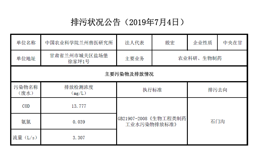 2019年7月4日污水排放检测数据公告