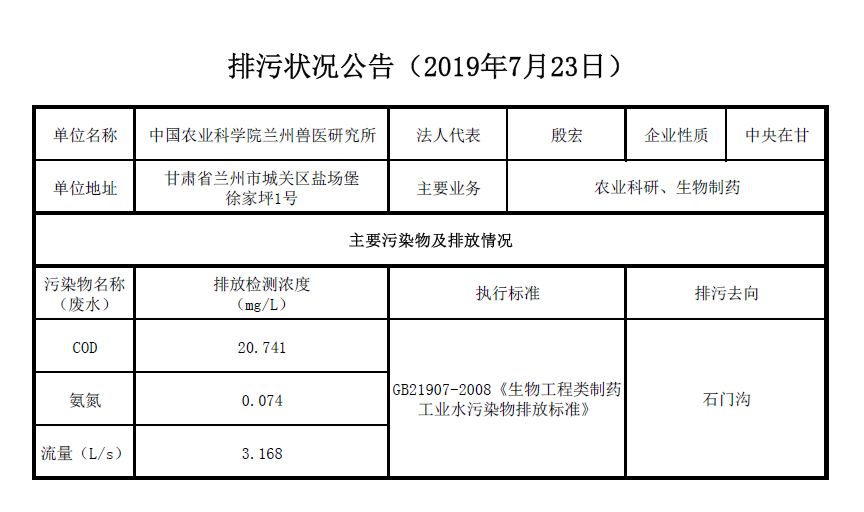 2019年7月23日污水排放检测数据公告