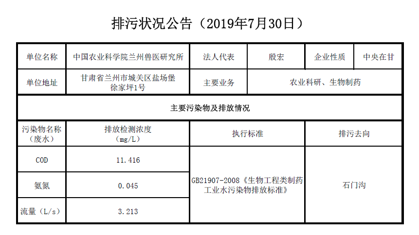 2019年7月30日污水排放检测数据公告