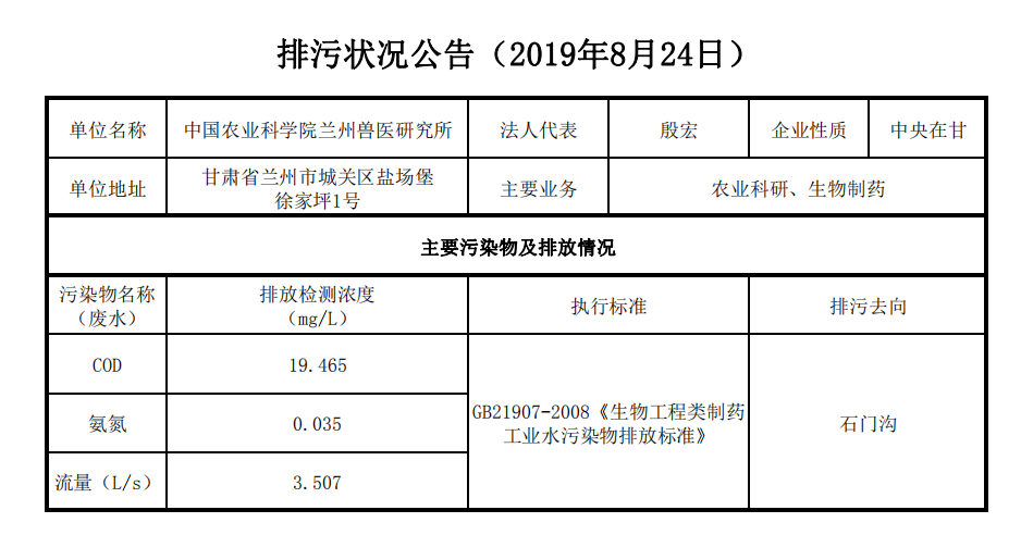2019年8月26日污水排放监测数据公告