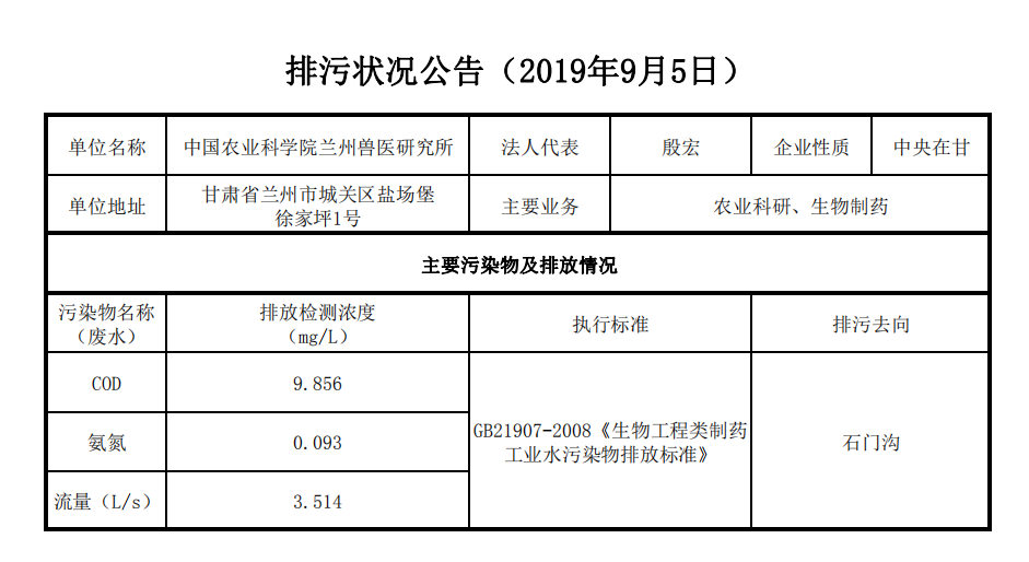 2019年9月4日污水排放监测数据公告
