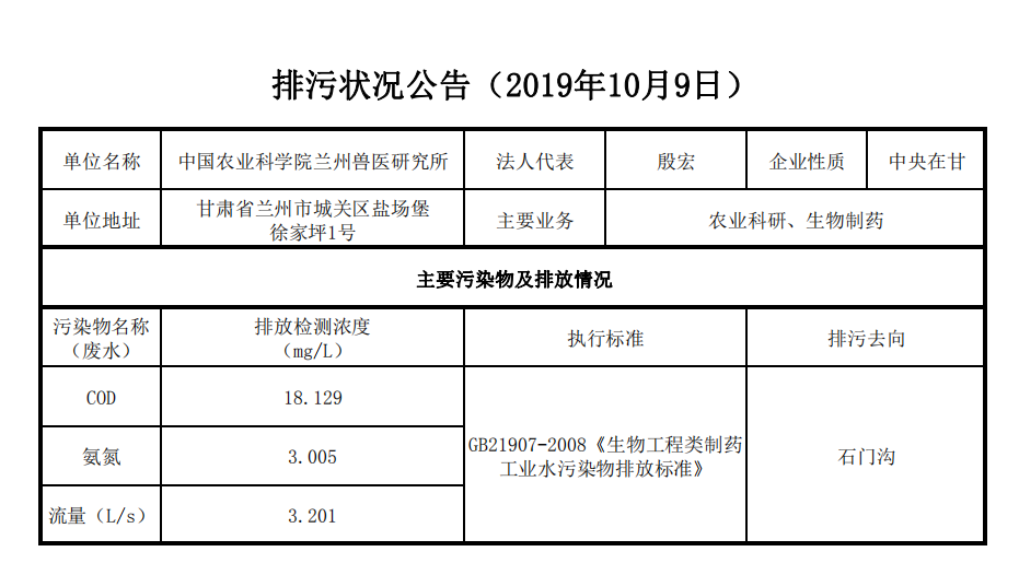 2019年10月10日污水排放监测数据公告