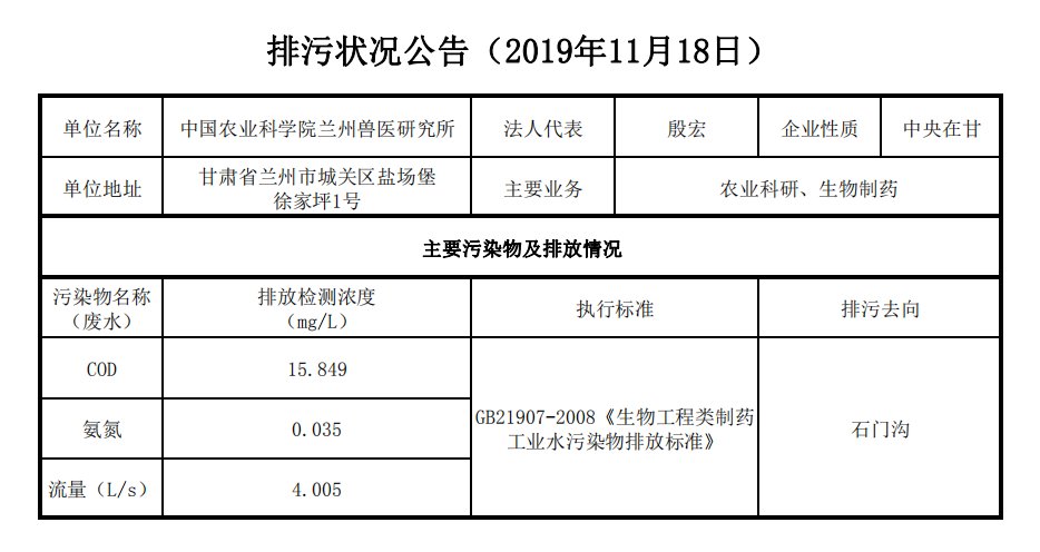 2019年11月19日污水排放监测数据公告