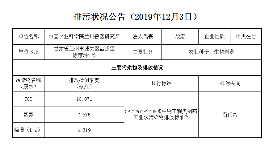 2019年12月3日污水排放监测数据公告