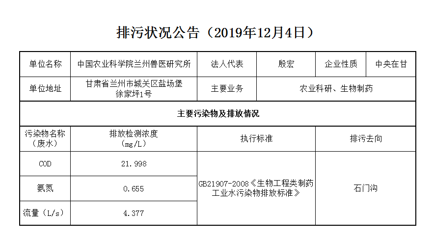 2019年12月4日污水排放监测数据公告