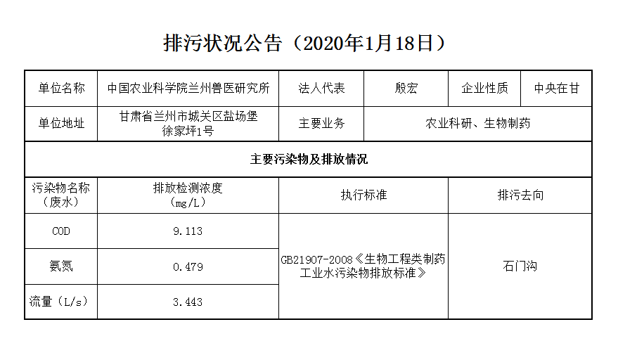 2020年1月16日污水排放监测数据公告