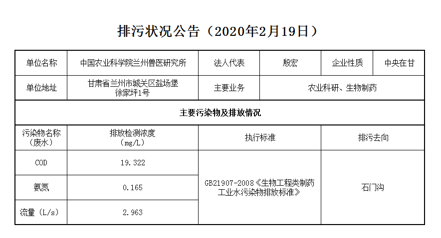 2020年2月19日污水排放监测数据公告