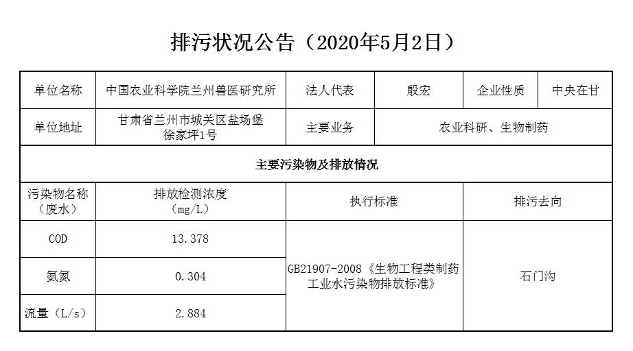 2020年5月2日污水排放监测数据公告