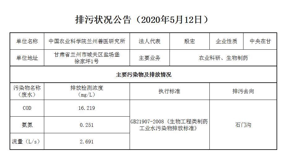 2020年5月12日污水排放监测数据公告