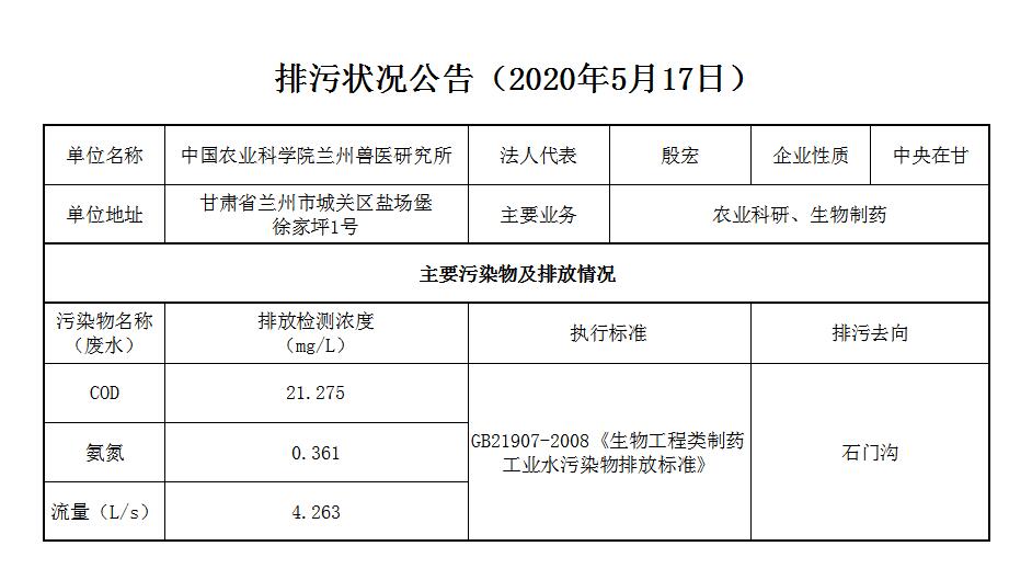 2020年5月17日污水排放监测数据公告