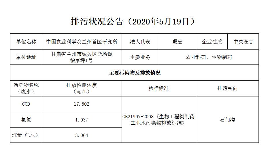 2020年5月20日污水排放监测数据公告