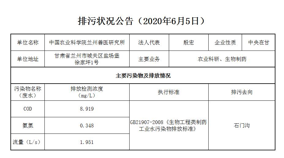 2020年6月5日污水排放监测数据公告