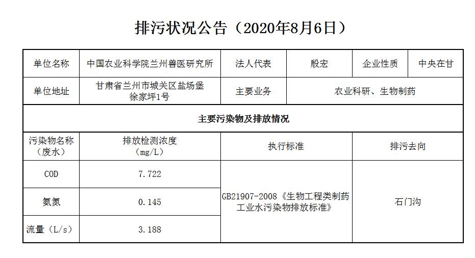 2020年8月6日污水排放监测数据公告