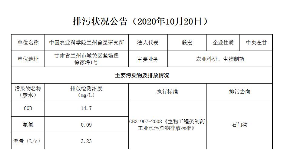 2020年10月20日污水排放监测数据公告