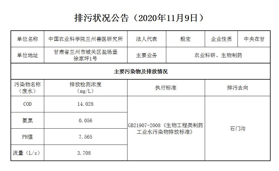 2020年11月9日污水排放监测数据公告