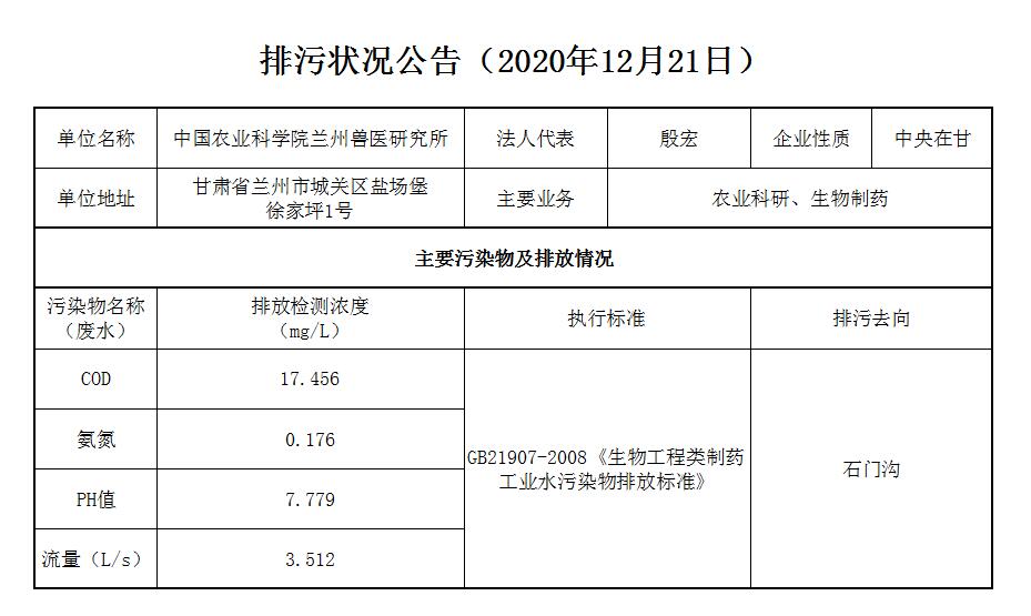 2020年12月21日污水排放监测数据公告