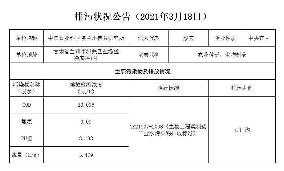 2021年3月18日污水排放监测数据公告