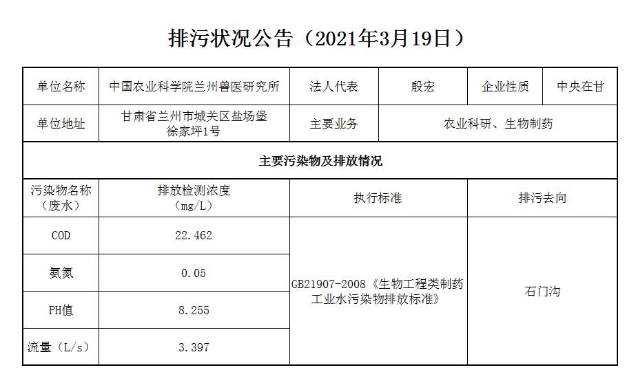 2021年3月19日污水排放监测数据公告