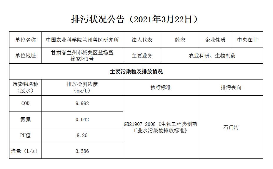 2021年3月21日污水排放监测数据公告
