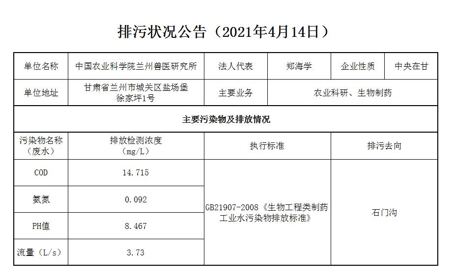 2021年4月14日污水排放监测数据公告