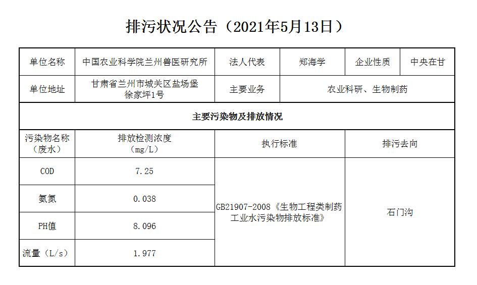 2021年5月13日污水排放监测数据公告
