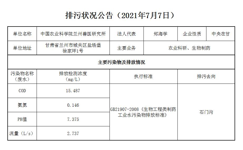 2021年7月7日污水排放监测数据公告