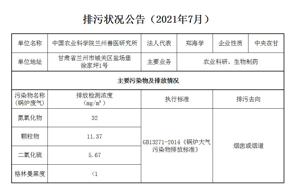 2021年7月锅炉废气排放监测数据公告