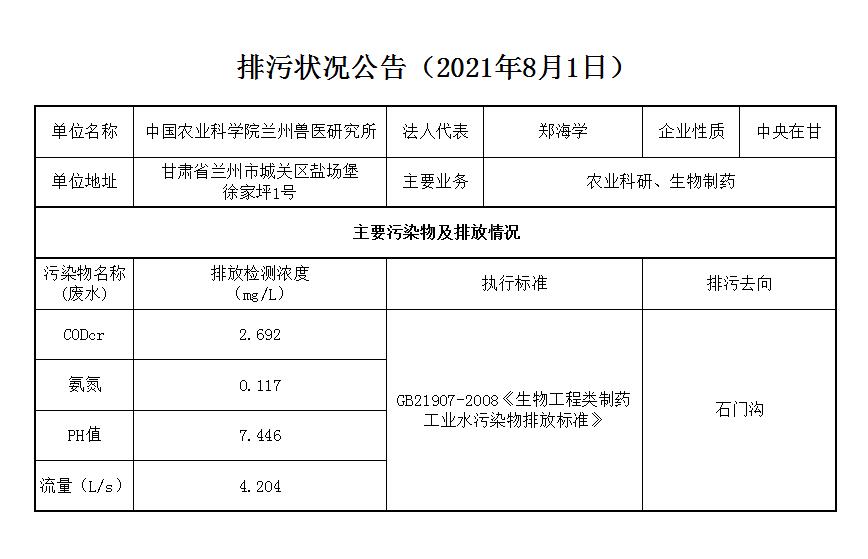 2021年8月3日污水排放监测数据公告
