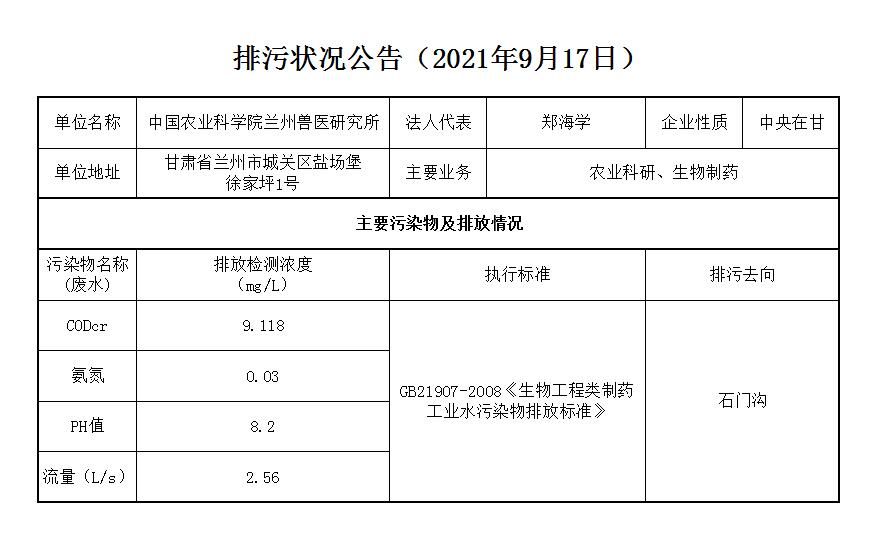 2021年9月17日污水排放监测数据公告