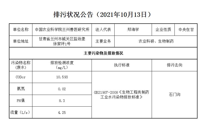 2021年10月13日污水排放监测数据公告