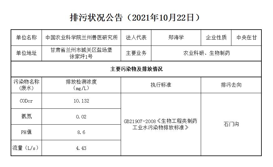 2021年10月22日污水排放监测数据公告