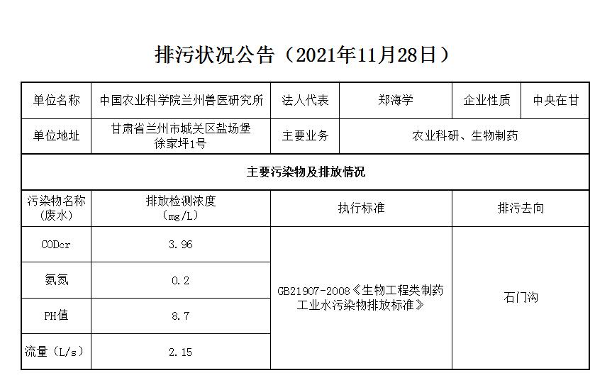 2021年11月28日污水排放监测数据公告
